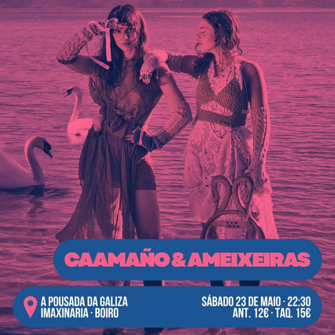 Sabela Caamaño (acordeón cromático) y Antía Ameixeiras (violín y voz) forman Caamaño&Ameixeiras, un dúo gallego ligado a la música y al baile de raíz. Desde su nacimiento, en 2018, este dúo cuenta con una intensa trayectoria, tanto a nivel nacional como internacional. Tomando como punto de partida la tradición, el dúo construye un lenguaje propio y singular, a través de composiciones y arreglos personales y vivos que dialogan orgánicamente con ella, preservando la esencia de lo popular e incorporando a la vez recursos contemporáneos. Destaca también el cuidado y la solidez interpretativa del dúo, fruto de una profunda y amplia formación musical e instrumental. Su propuesta sitúa la emoción y la expresión en el centro, reivindicando la música de raíz como un espacio de creación, riesgo y libertad.